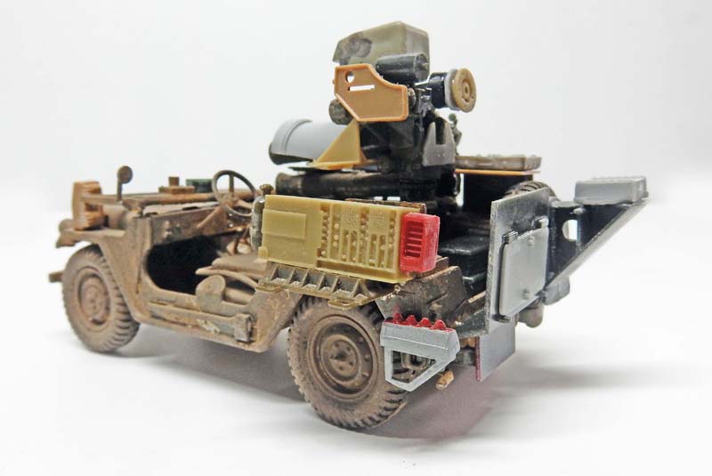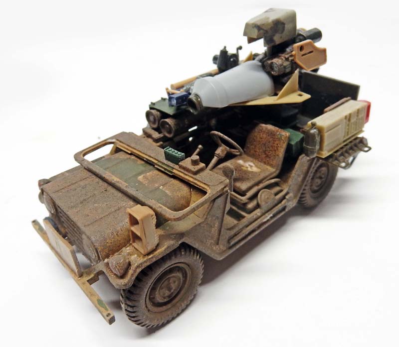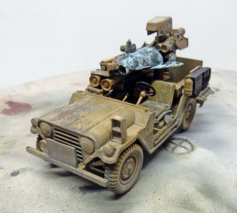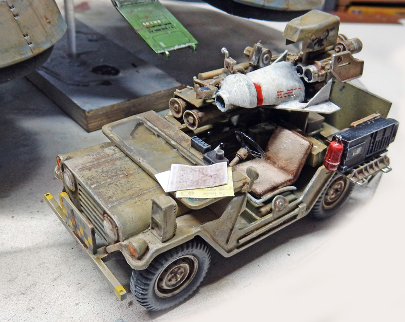 La jeep Ford Mutt 151. Elle vient de la boîte à surplus. Un drone est ajouté ainsi qu'une conduite de tir et quelques accessoires...