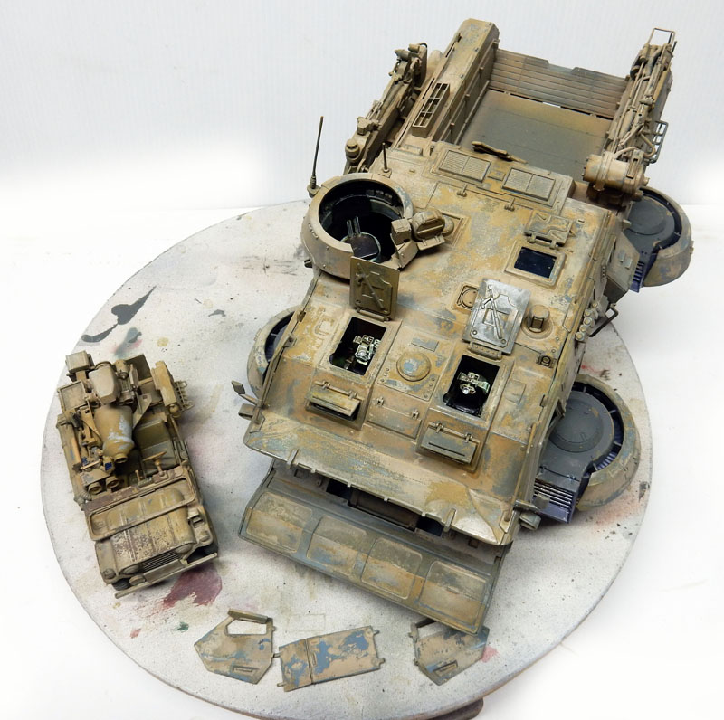 Après traitement final de la peinture, on ajoute une fine couche de sand 79 pour simuler la poussière...
