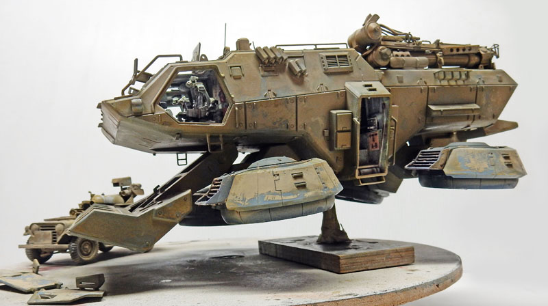 Une maquette bien moulée comprenant un char antigrav, des figurines et des accessoires et un superbe plan couleur. Les parties visibles de l'intérieur de la cabine ont été peintes en vert...