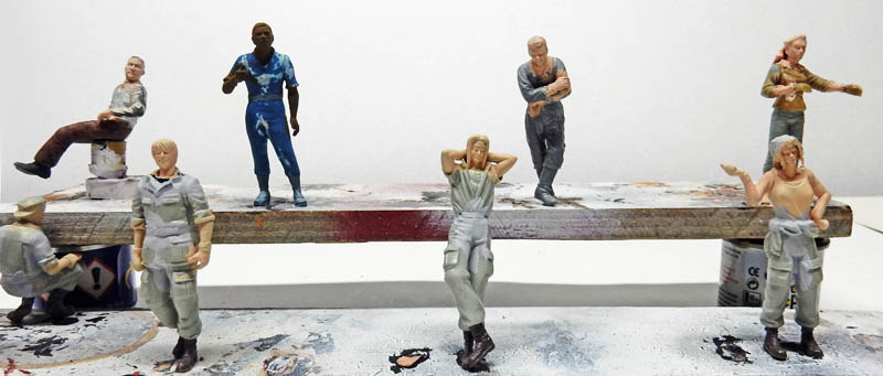 Les figurines fournies auxquelles on a ajouté d'autres personnages pour l'équipage de la jeep...