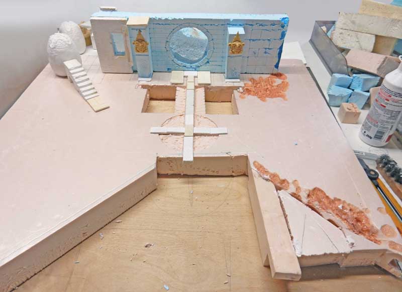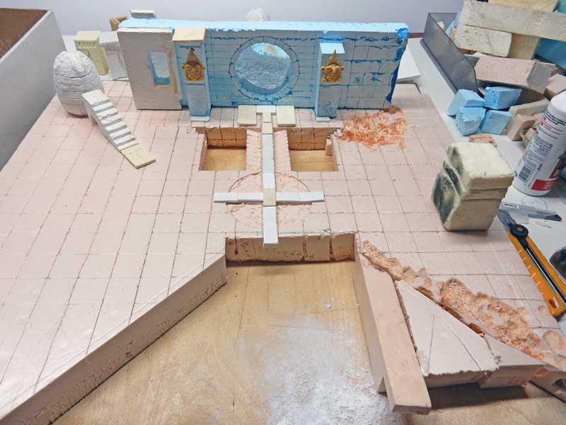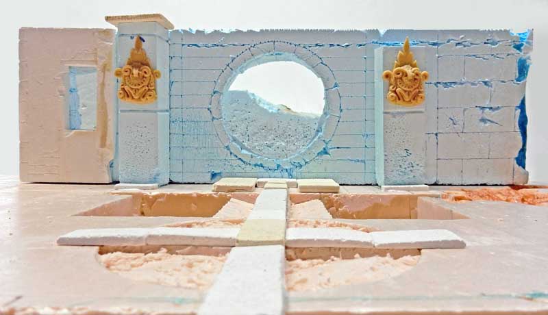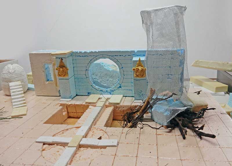 Le polystyrène est gravé pour reproduire des ruines en pierre...