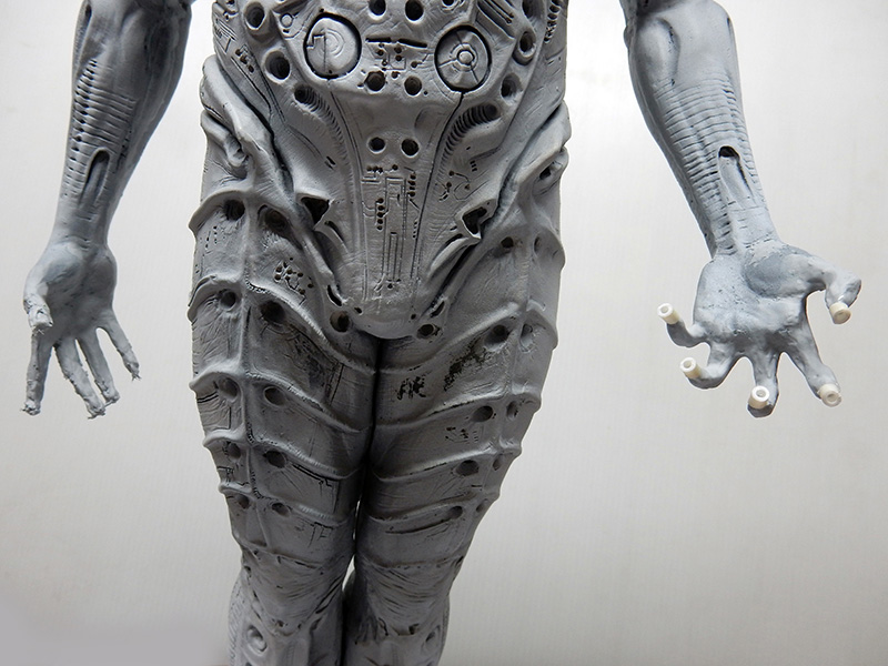 All the beads are removed with a fine grinder, as are some of the joints on the sides of the figure. Liquid putty completes the job...