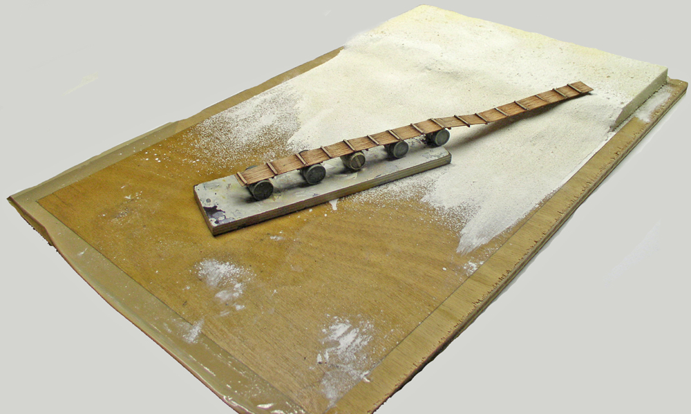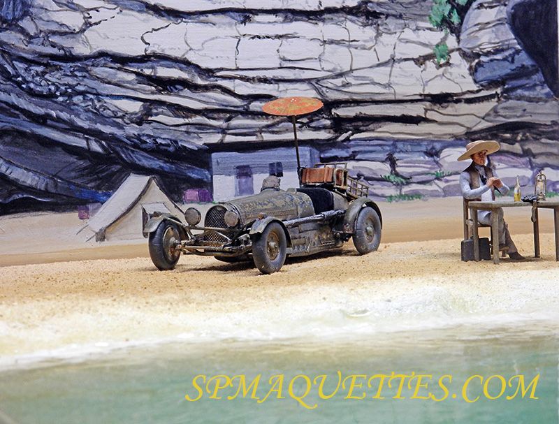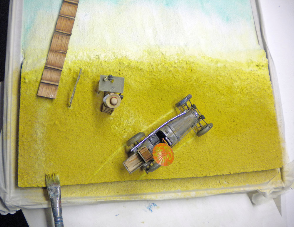 Le décor. Polystyrène extrudé et plâtre de Paris pour le sable. Contreplaqué pour le fond...