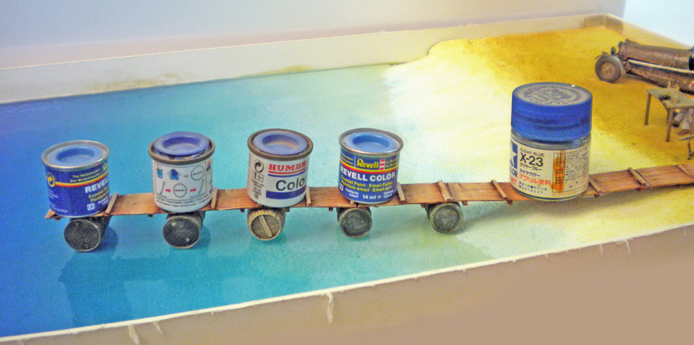 Peinture des flotteurs qui reçoivent un argent Models Master puis, une fois secs, un filtre à base de Terre d'Ombre et Terre de Sienne...