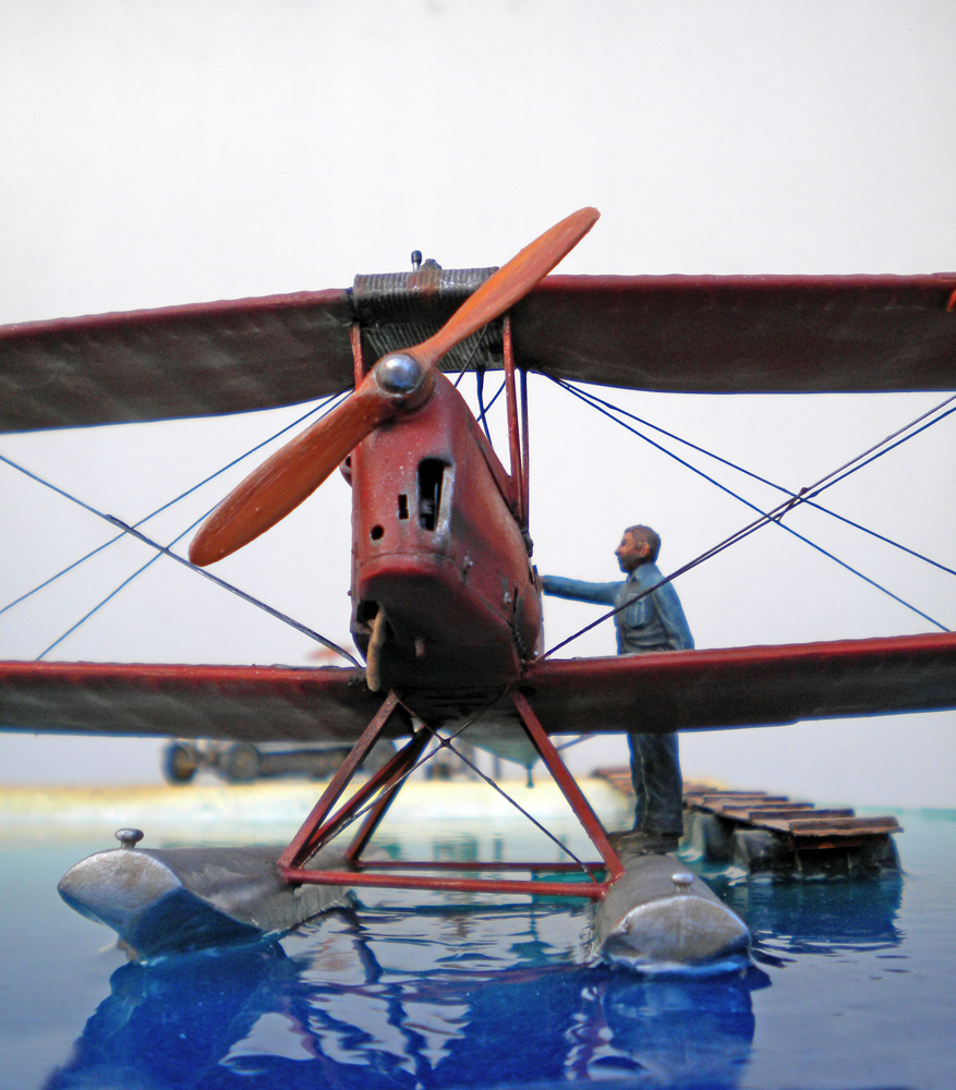 L'appareil d'Emile Folks est un biplan de la dernière guerre. Le kit Matchbox à l'échelle 1/32ème date de... 1979 et demande des améliorations. Il deviendra ici - diorama oblige - un hydravion...