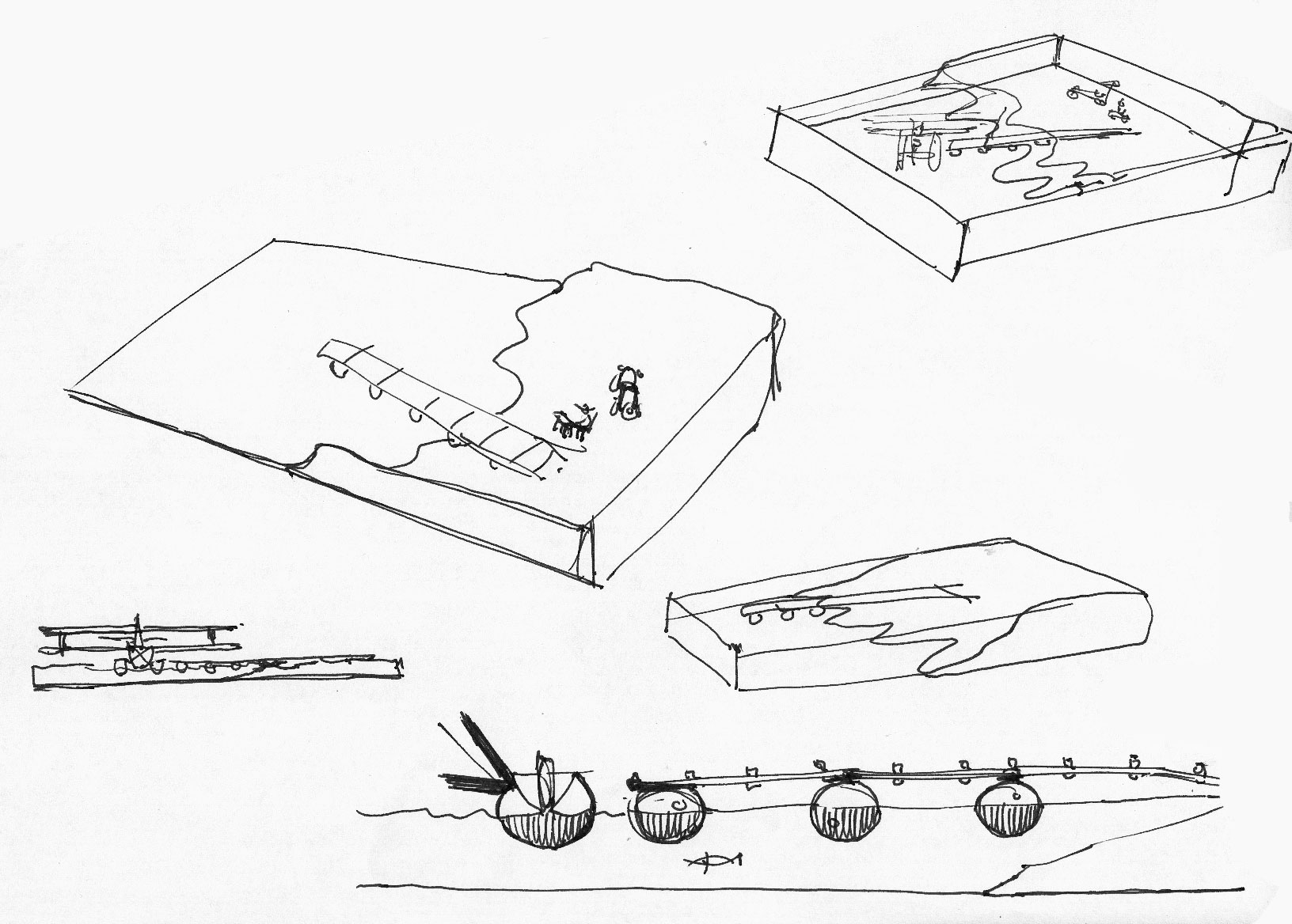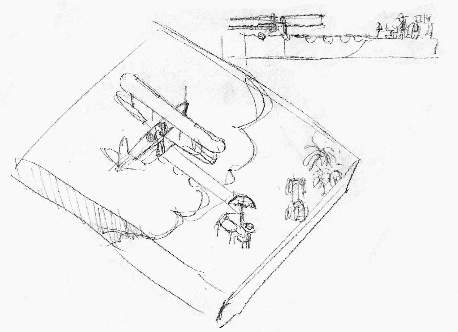Quelques dessins ont servi pour trouver un bon visuel afin de mettre la scénette en valeur...