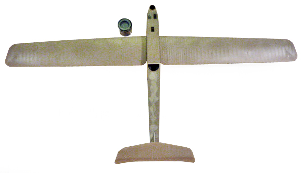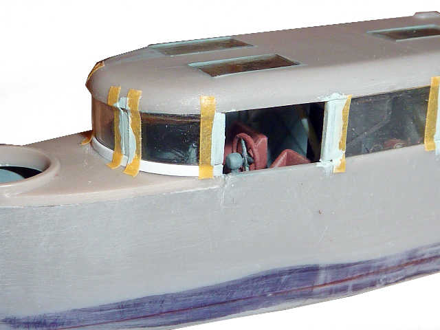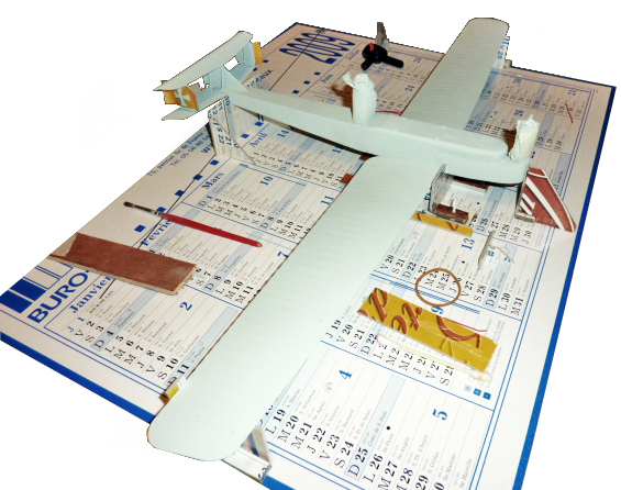 On peut s’imaginer la taille de la maquette, comparée au pot de peinture (60cm d’envergure pour 31cm de long !). Du masticage est nécessaire…