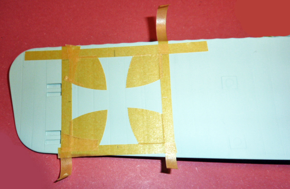 In the absence of decals of the right size for this version, stencils were created for both the daggerboards and the wings...
