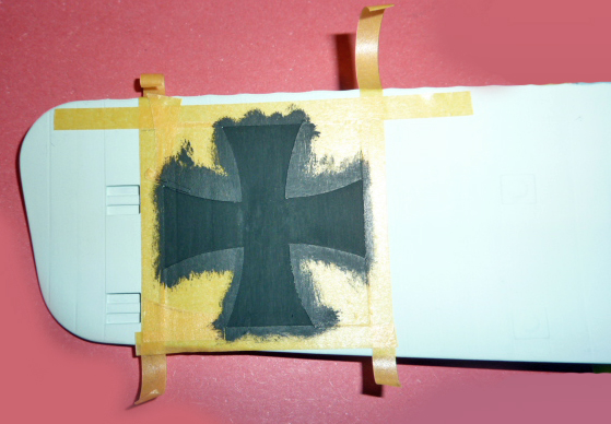 Faute de décals à la bonne taille pour cette version, des pochoirs sont créés tant pour les dérives que pour les ailes…