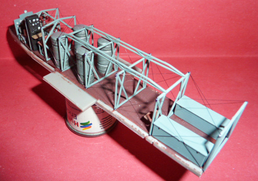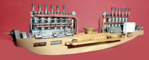 The engines are fixed in their nacelles, as are the masts supporting the radiators. The metal reinforcements encircling the nacelles will be rebuilt in plastic card...