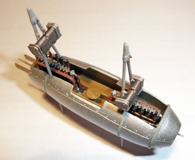 The interior of the fuselage is completed with cans, crates, cockpit and shrouds...