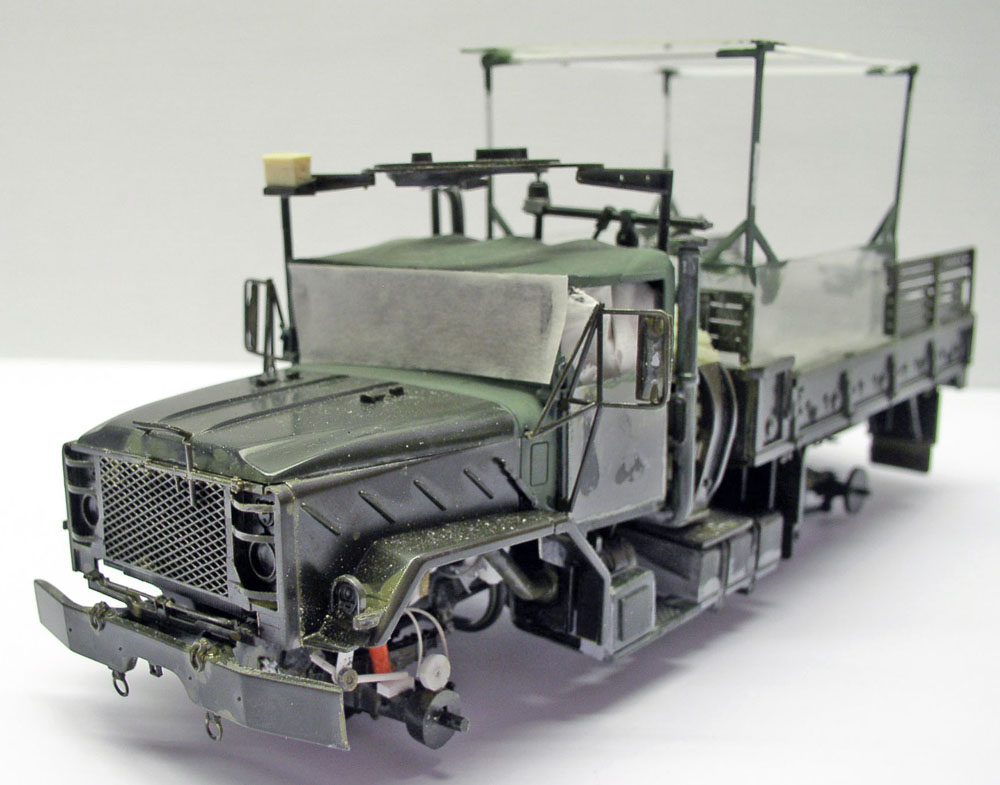 The grenade launcher is in place. Five handles are added to each side of the rear frame rails...