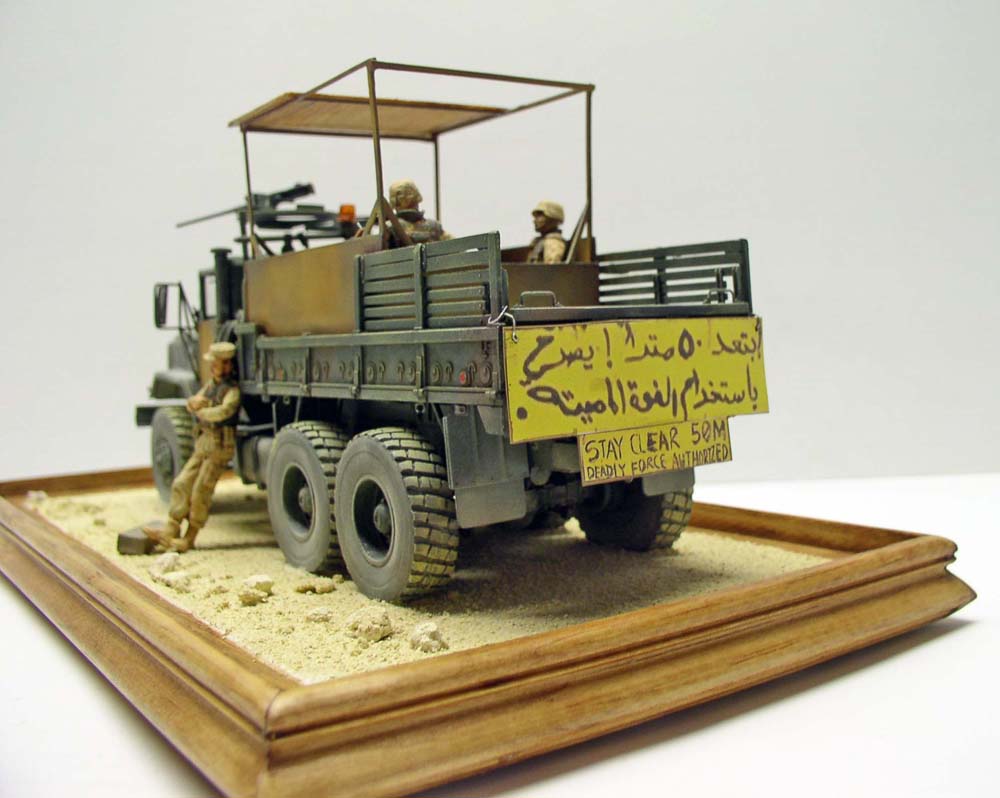 Ajout du panneau d'avertissement. Suite aux nombreuses attaques en Irak, bons nombres de Hummer et camions américains de la guerre du Golfe comportent à l'arrière un panneau avec des inscriptions en arabe et en anglais interdisant à tous véhicule de se rapprocher de moins de 50m sous peine de tirs de protection...