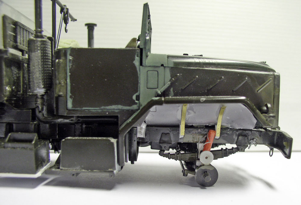 Le lance-grenade est en place. Des poignées, au nombre de cinq sont rajoutés de chaque côté des longerons arrières du chassis...