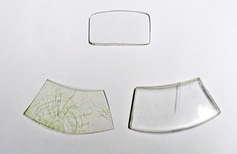 Le pare-brise est remplacée par de la carte plastique chauffée et fissurée au cutter. On garde en l'affinant, la glace de la plage arrière...