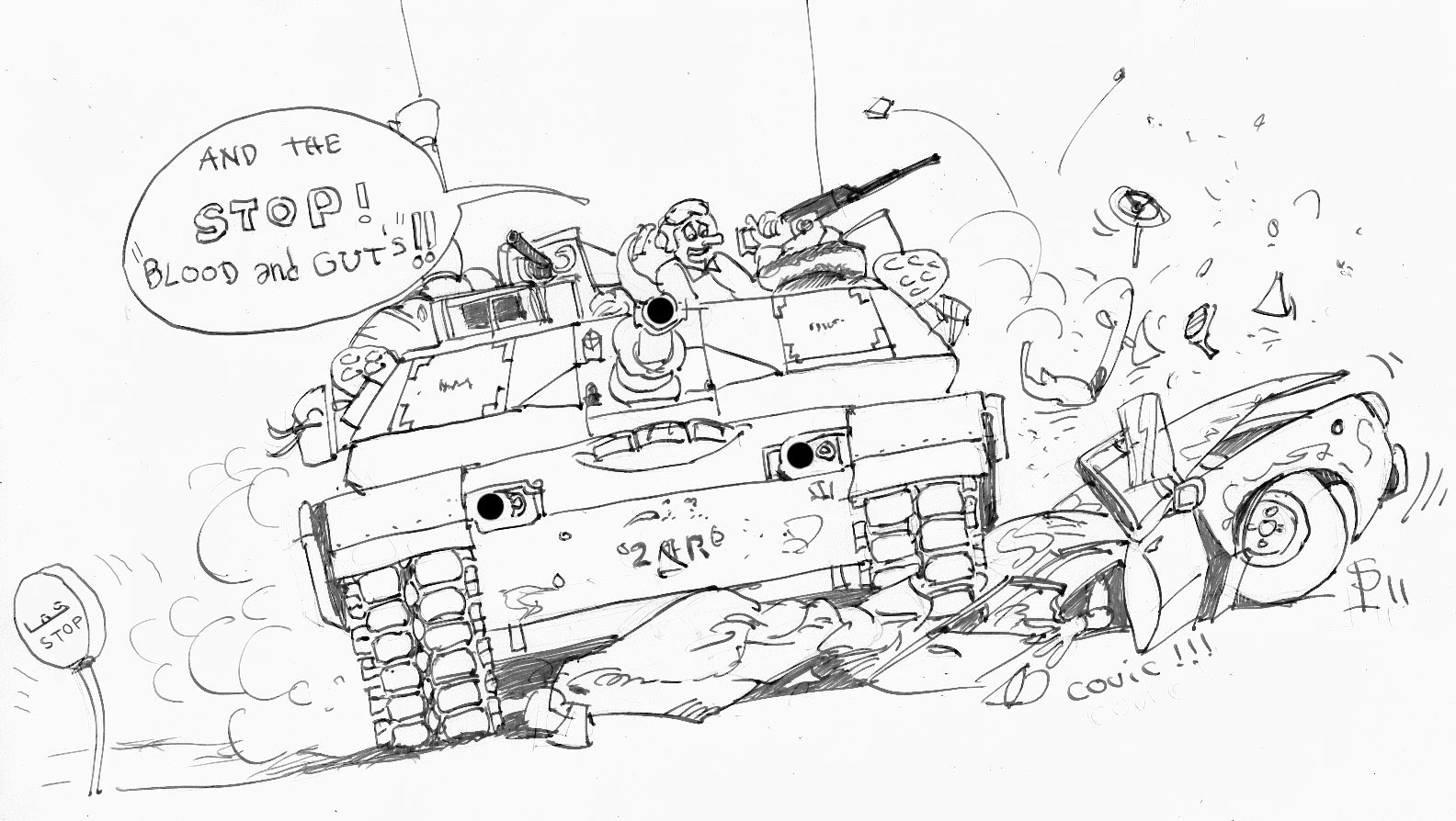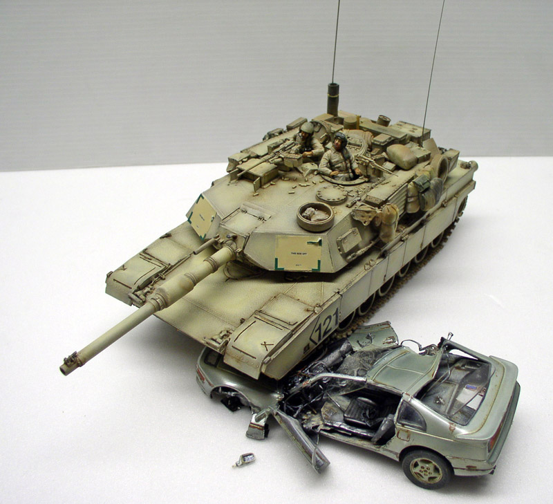 Spearheading both Gulf Wars, the M1 A1 Abrams deserved a diorama to show it off. The photo above gives an idea of the vehicle's power and mass, and became a good source of inspiration for a scene...