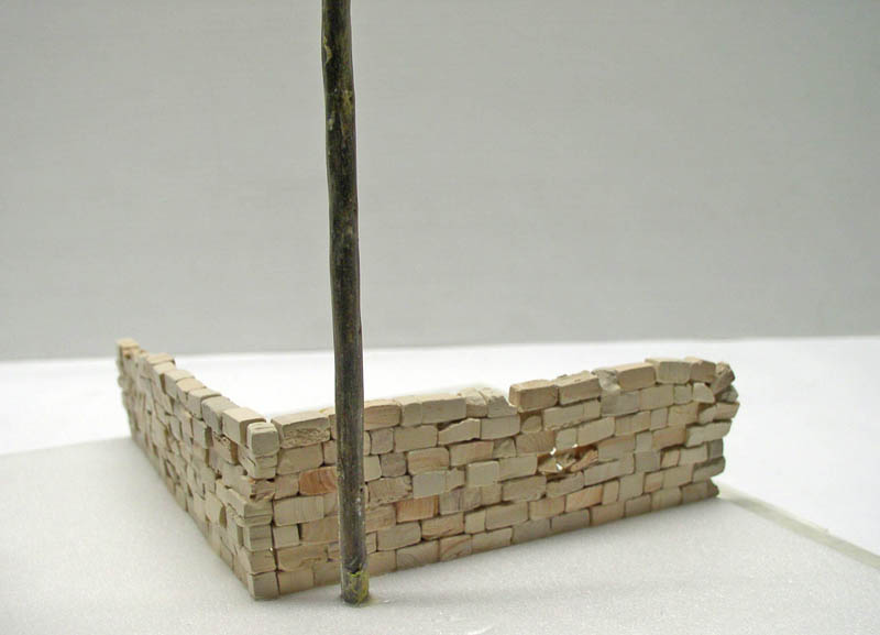The low wall is made of bricks glued together with wood glue. The post comes from Italeri...