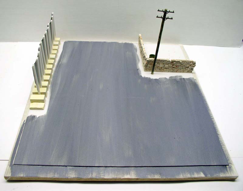 Le muret de gauche est réalisé à partir de bloc de plâtre moulés et de baguettes d'Evergreen...