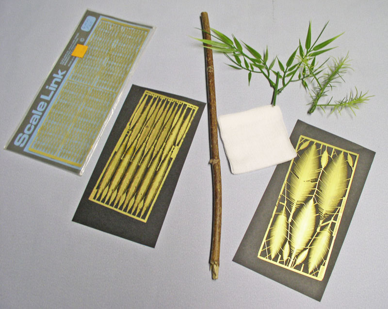 Here, a shrub branch for the trunk, gauze and an old ScaleLink kit...