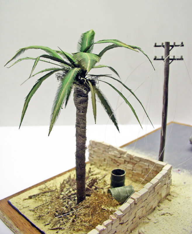 The palm tree in place; Despite the high cost of this style of photoetching, no provision had been made for renovating the leaves, leaving us with two options: make and glue them, or paint them realistically. The second solution has been adopted...