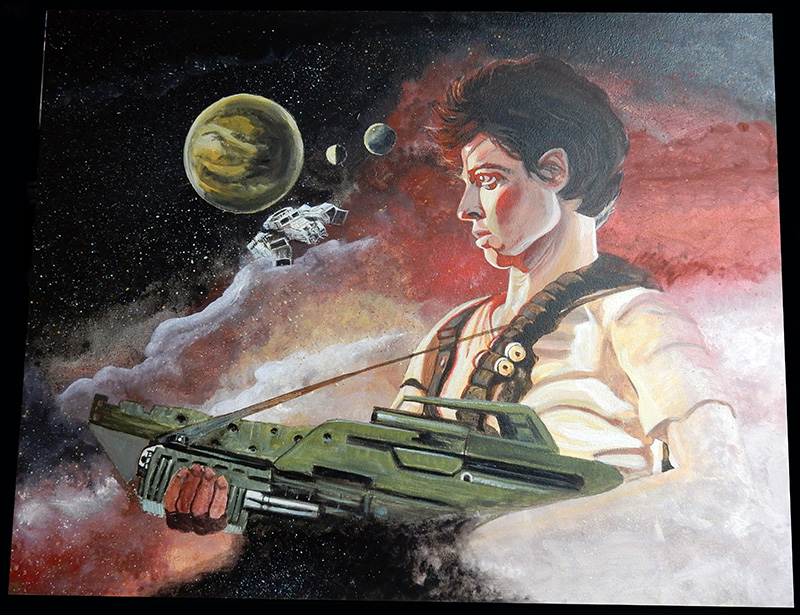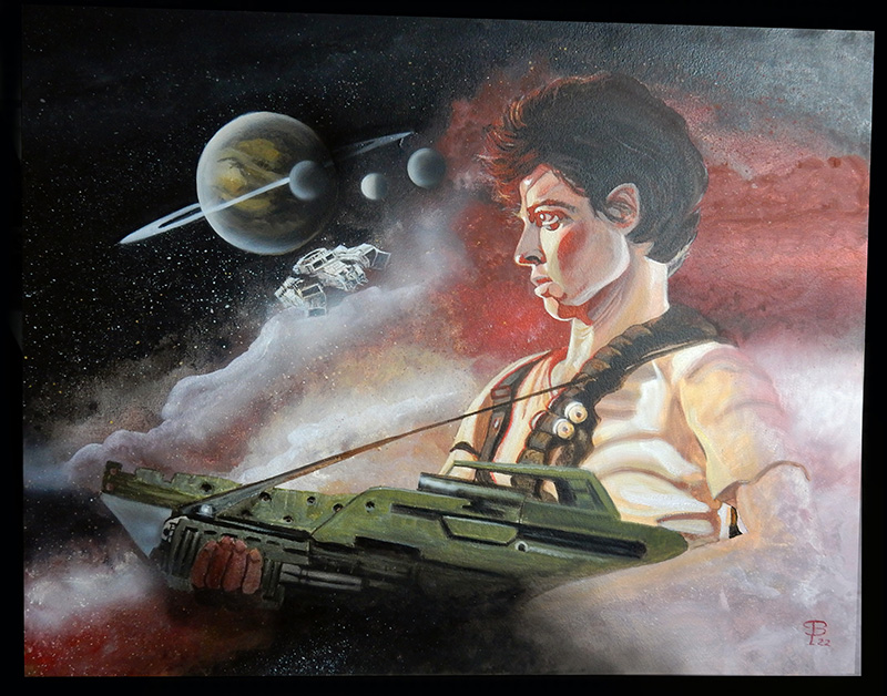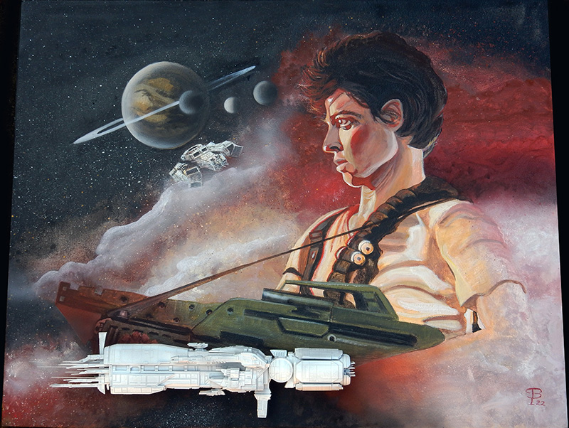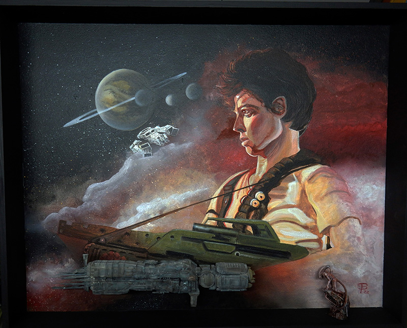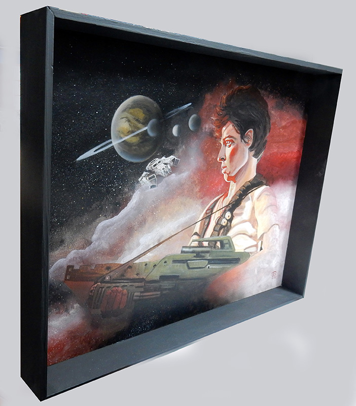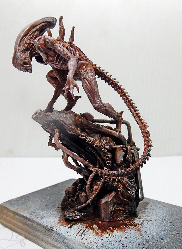 Pour décorer sur le côté, un petit Alien à l'échelle 1/32ème en résine - très détaillé est peint dans l'ambiance du tableau...