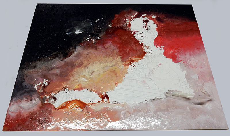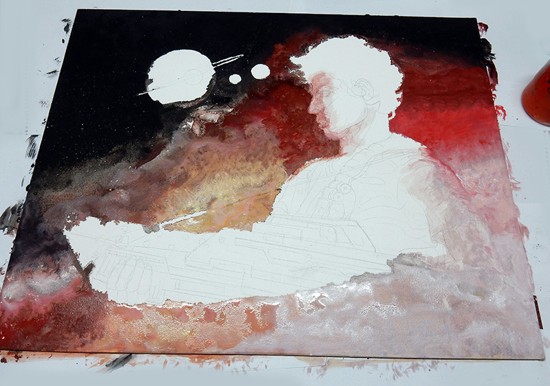 We start with the background. The paint used is Liquitex acrylic...