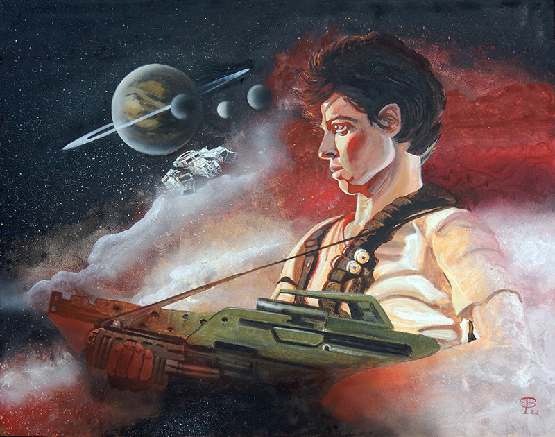 Le tableau résume l'action... Le système Reticuli avec la géante gazeuse Calpamos et la planète LV-426 (3ème à gauche) où sera découverte l'épave de l'Alien... On voit le Nostromo repartir de la planète dans le premier film...