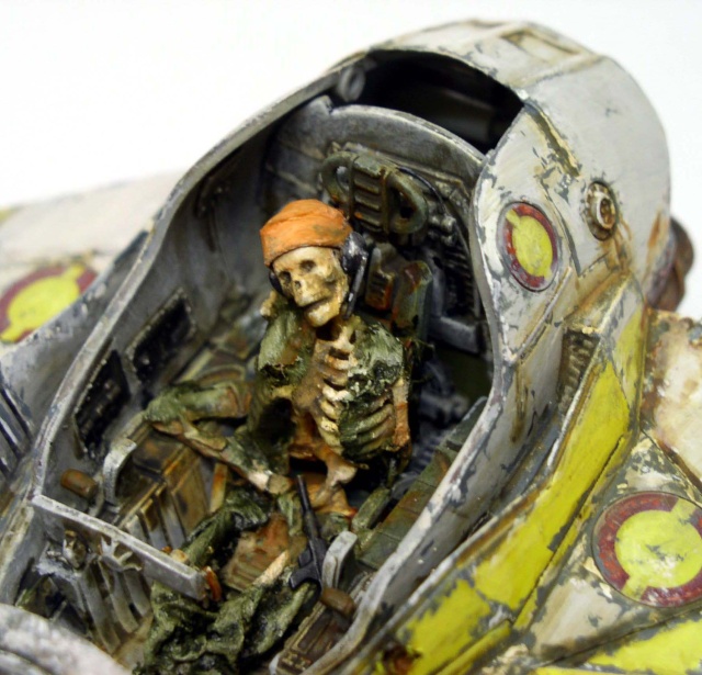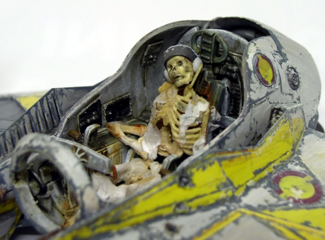 The rubber pilot from the kit is quickly removed and replaced by... a skeleton whose clothing remains are made from a piece of tissue diluted in wood glue...