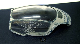 Above: The cockpit canopy has taken two impacts. The holes were drilled with a mini-drill, and the cracks with a cutter...
