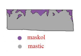 Quand l'ensemble est bien sec, on enlève délicatement le MASKOL et la couleur en dessous réapparaît...