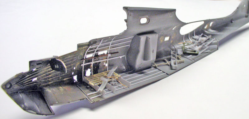 It has to be completely redetailed. The seats have been cut out and gridded with photoetched remnants...
