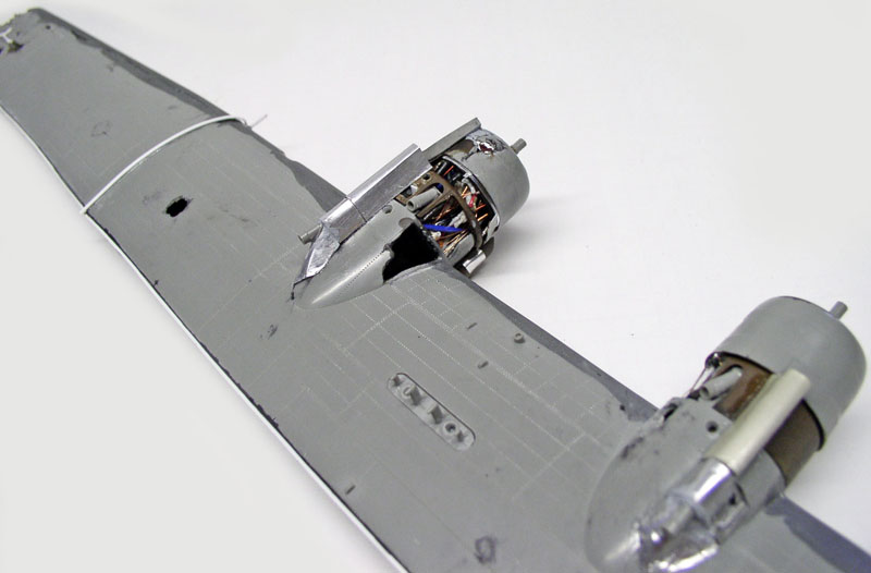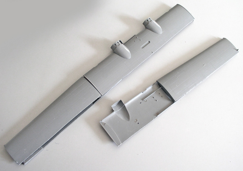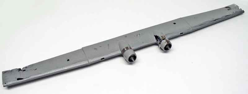 The wing attachment beams in place. The landing gear wells have also been painted and aged after upgrading...