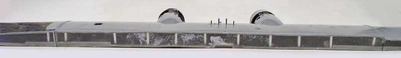 Les poutrelles de fixation des ailes en place. Les puits des trains d'atterrissage ont été également peints et vieillis après amélioration...