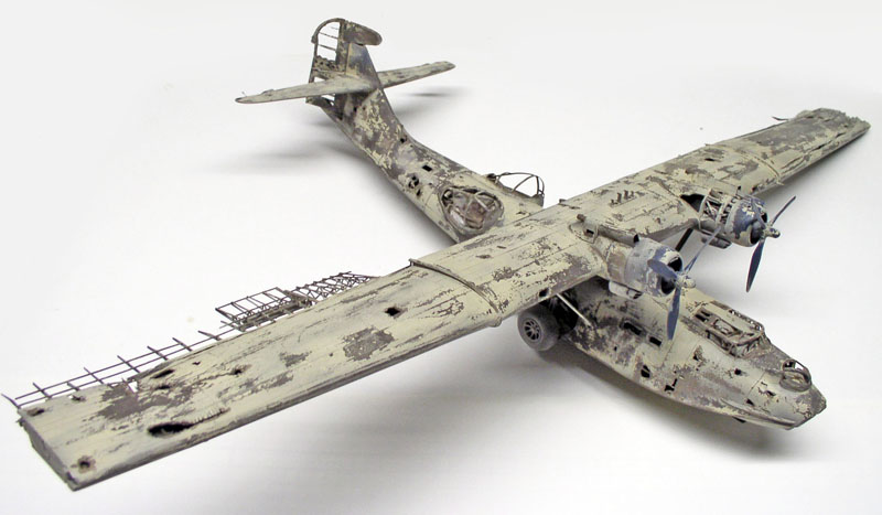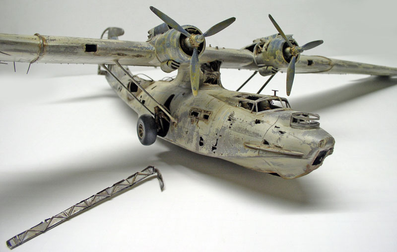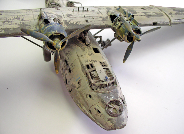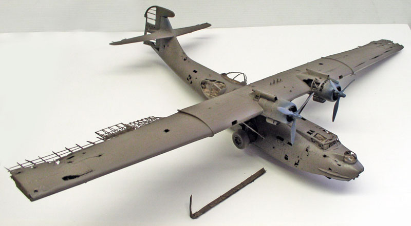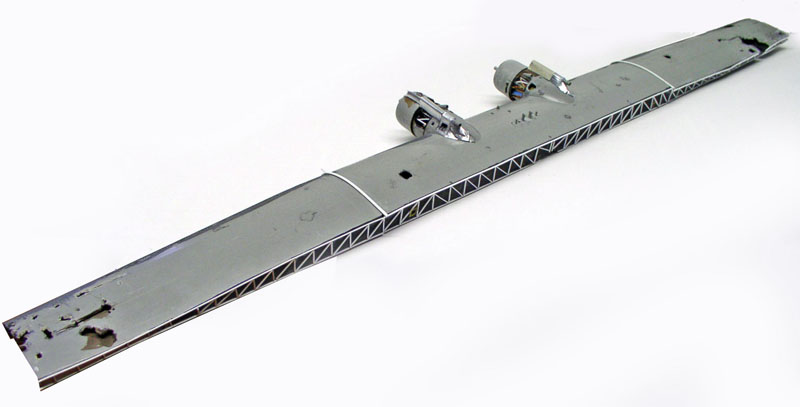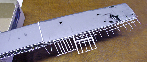 The stringers are made of Evergreen, while lead sheeting was used for the torn-off plates...