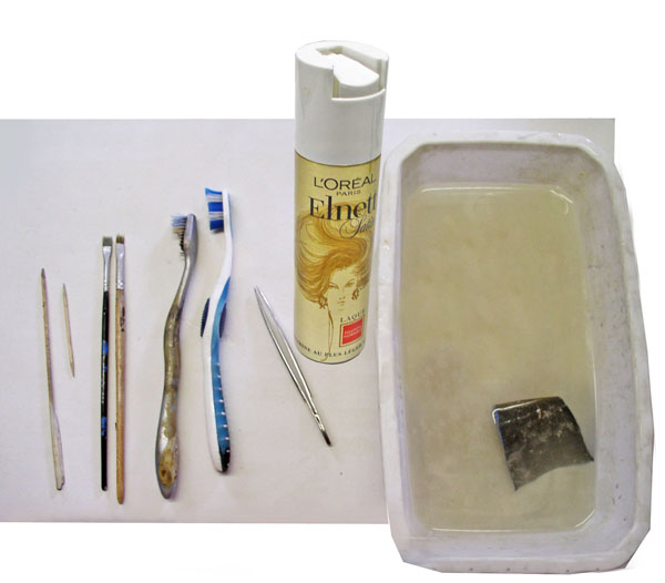 A variety of tools can be used to "scrape" paint. From toothpicks to sandpaper to water 600. Each tool must be used with care and with the greatest possible reference to the documentation...