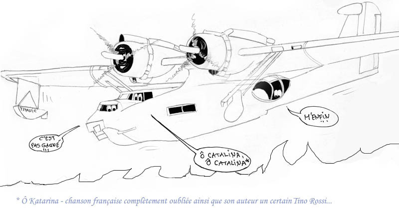 Pour rendre l'ensemble plus vivant et montrer la taille impressionnante du Catalina, un personnage civil est ajouté qui préfigure les locaux qui allaient pique-niquer sur la plage à l'ombre des ailes de l'avion...