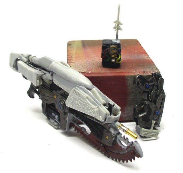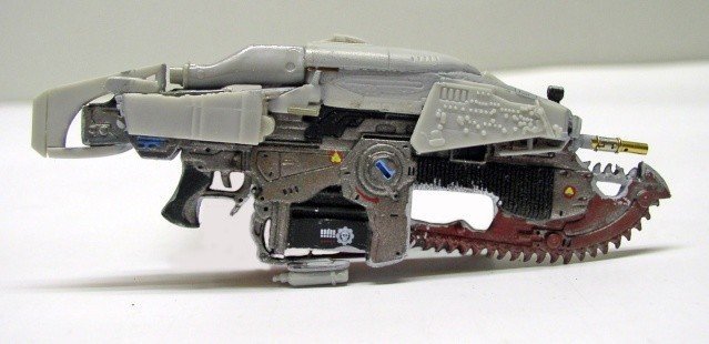 1st thing: the "skinny" weapon is recut to make it "bigger" - it's also veiled - notably with airplane parts. This one looks more like a chainsaw than an assault rifle !...