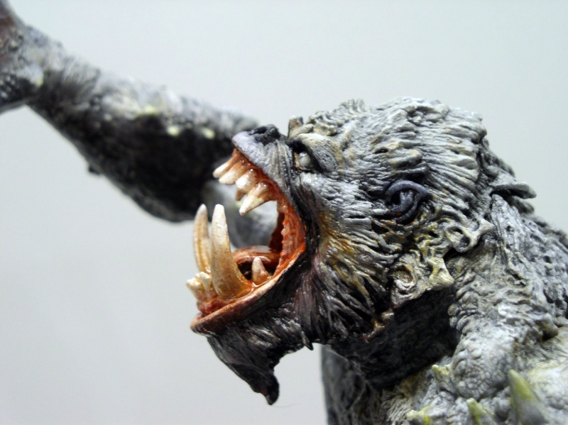 Passons à la bestiole: même étape que pour Conan mais il faut re-sculpter les poils au mastic au niveau des jointures et des joints pour éliminer toute trace d'articulation...