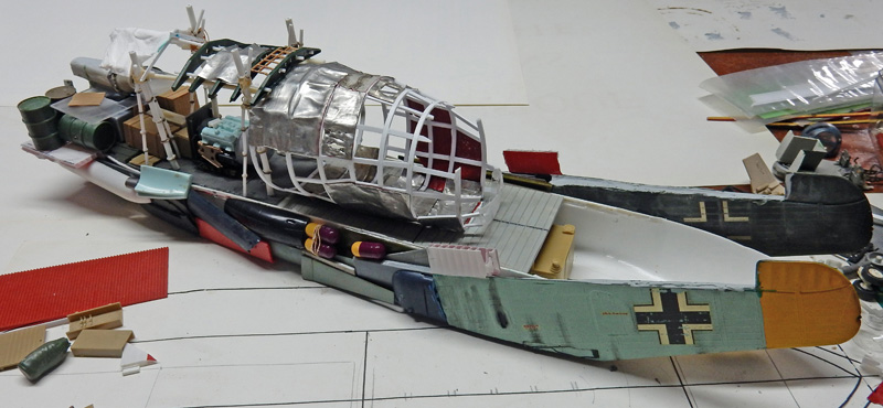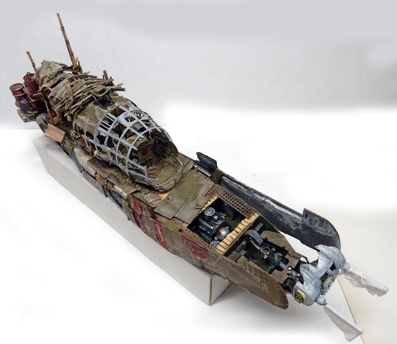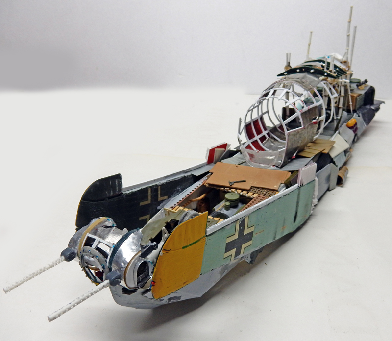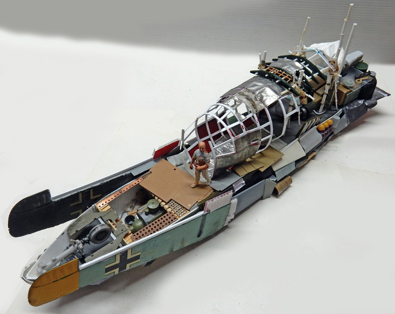 The cockpit nacelle comes from a Japanese Mitsubishi G4M BETTY bomber, whose frame is made from Evergreen...