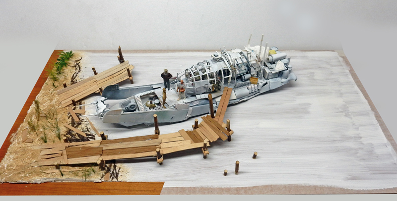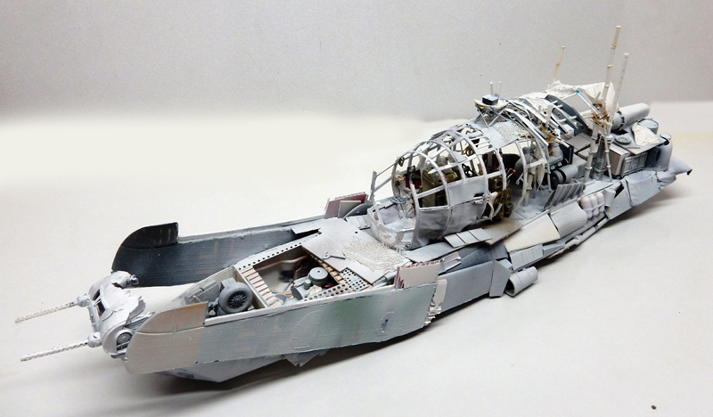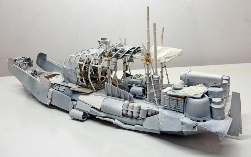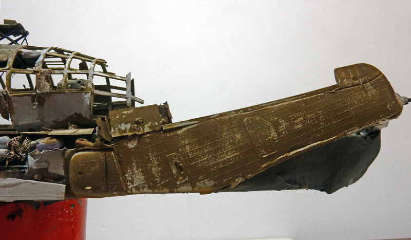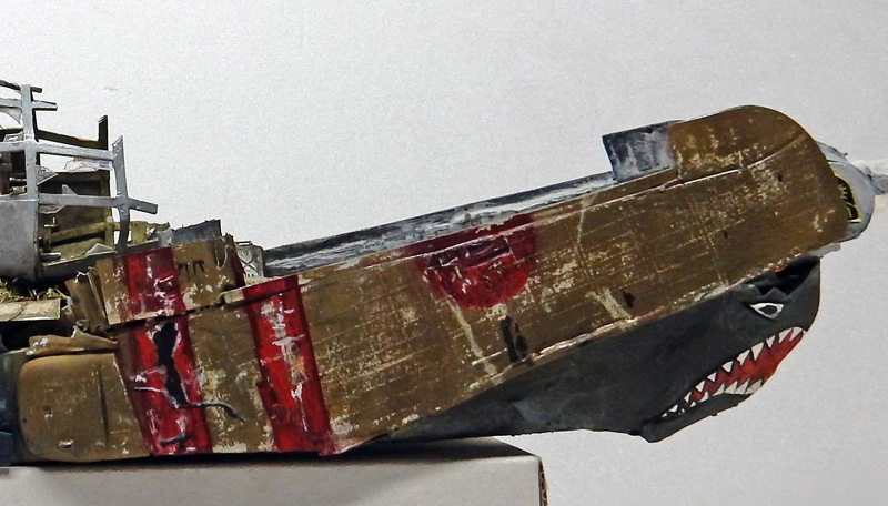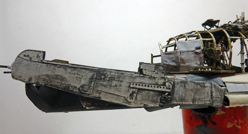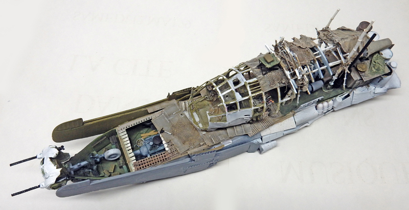 Markings are created with Tamiya X7 red. Tears are simulated in paint. The stern nose is brush-painted...