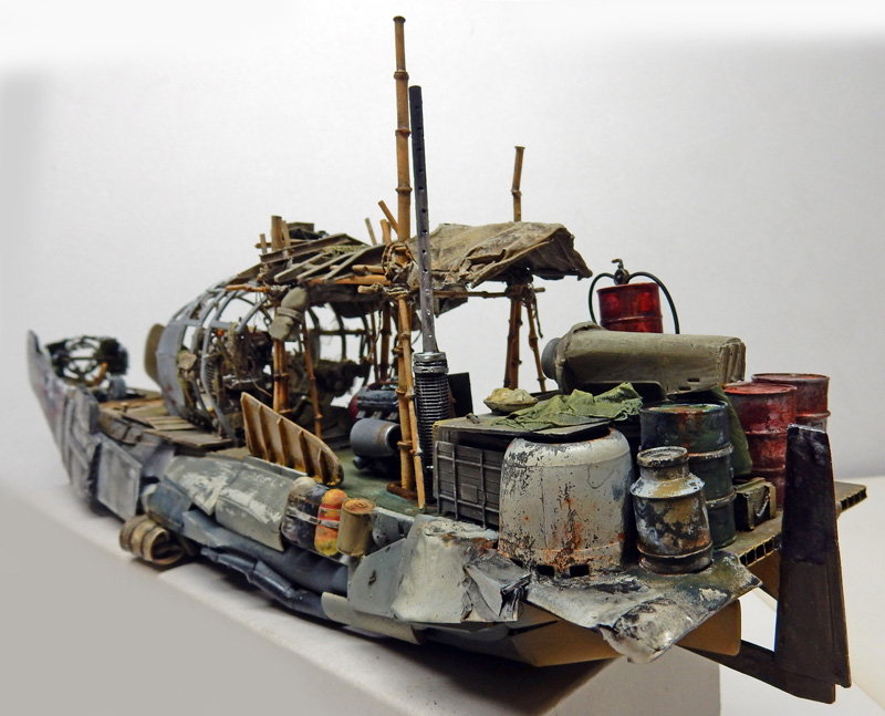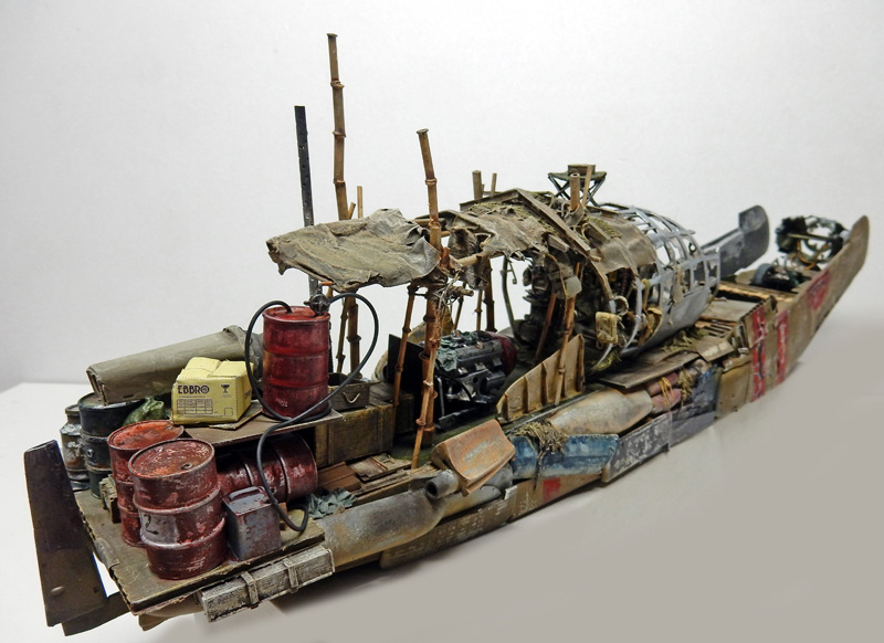 As there are no models, we'll have to rely on photos for the construction. A boat hull will serve as the base for this vessel, which looks more like a raft than a boat...