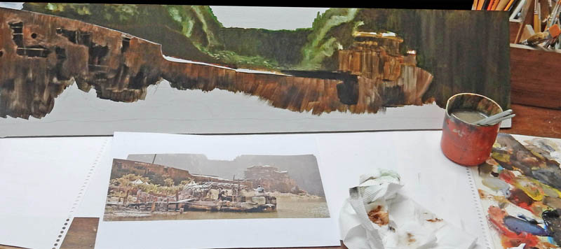 Acrylic painting. A photo from the movie will serve as a model for the set...