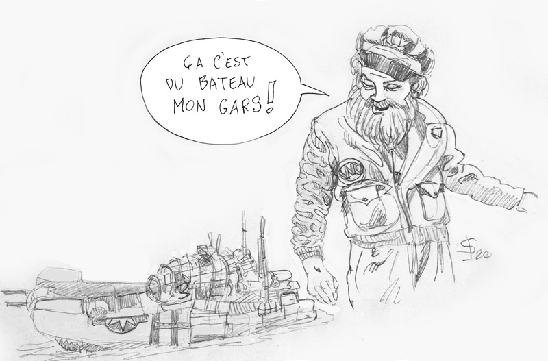 Les fûts, la casserole d'hélice de la poupe sont également traités à la laque à cheveux...