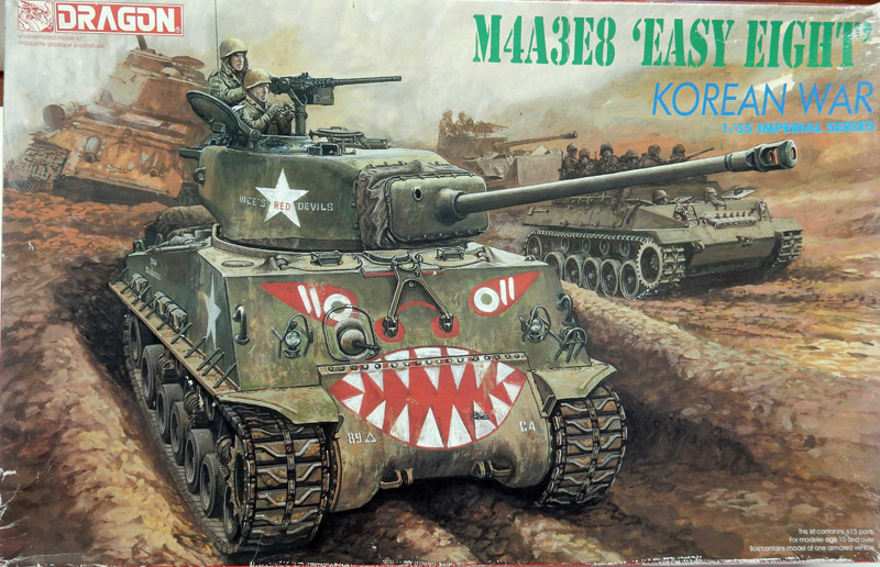 Les "easy eight", peu nombreux à la fin de la guerre, seront utilisés notamment lors de la guerre de Corée. Le kit de la marque Dragon - sorti en 1994 - marque réputée pour la qualité de gravure de ses modèles, moyennant un prix plus élevé - est choisi...