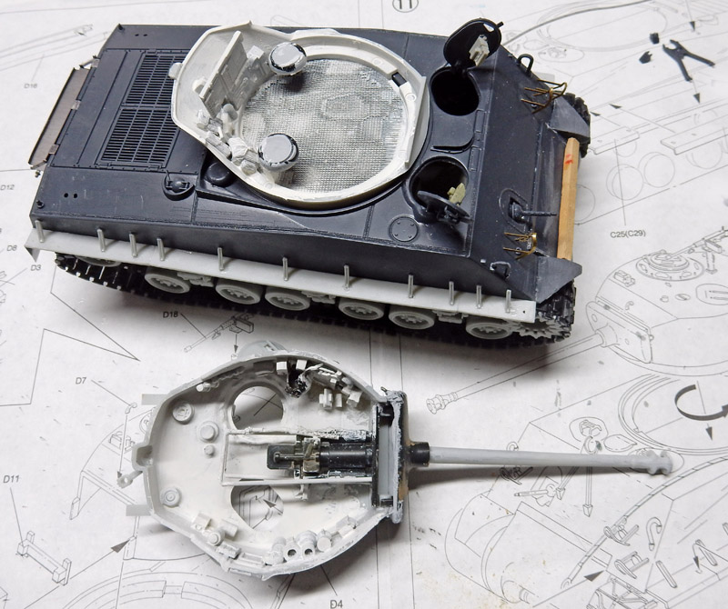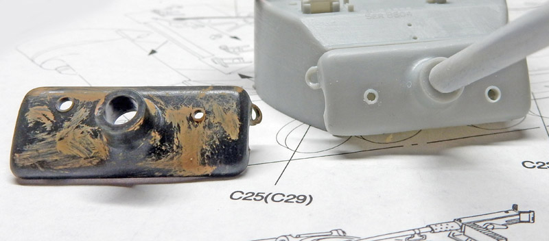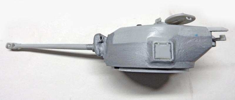 The two parts of the turret are glued together, and the joint must be filled all around and sanded to remove it.