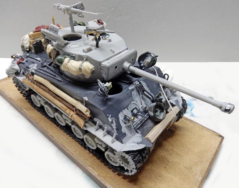 Above, three views showing the finishing touches. The barrel and turret edges receive satin varnish. Shine can be seen in these areas, where the crew often leaned...