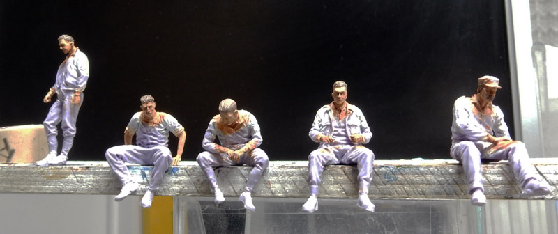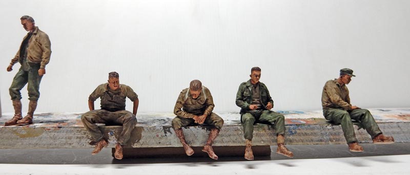 Assembly and painting of the resin crew. Don't forget the badges and braids. Humbrol oil for uniforms and Winsor & Newton for skin and hair...