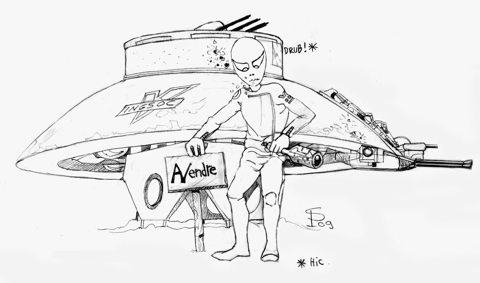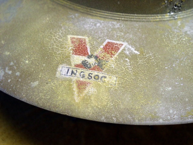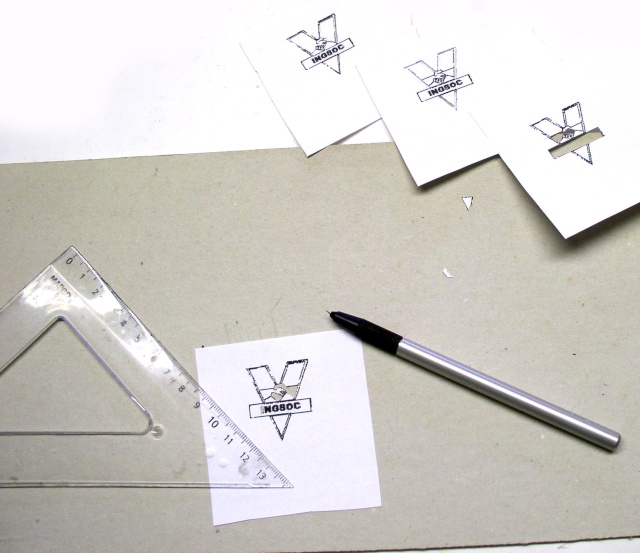 Le logo INGSOC - extrait du film 1984 - est dessiné puis après photocopie à l'échelle, servira de masque pour appliquer la peinture sur le modèle...