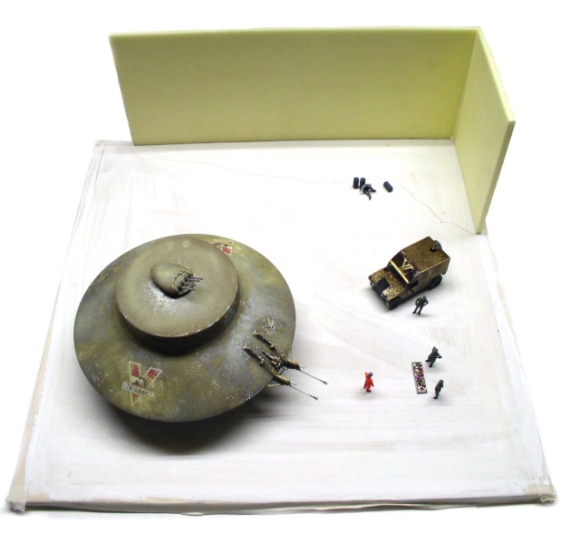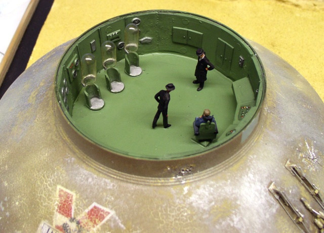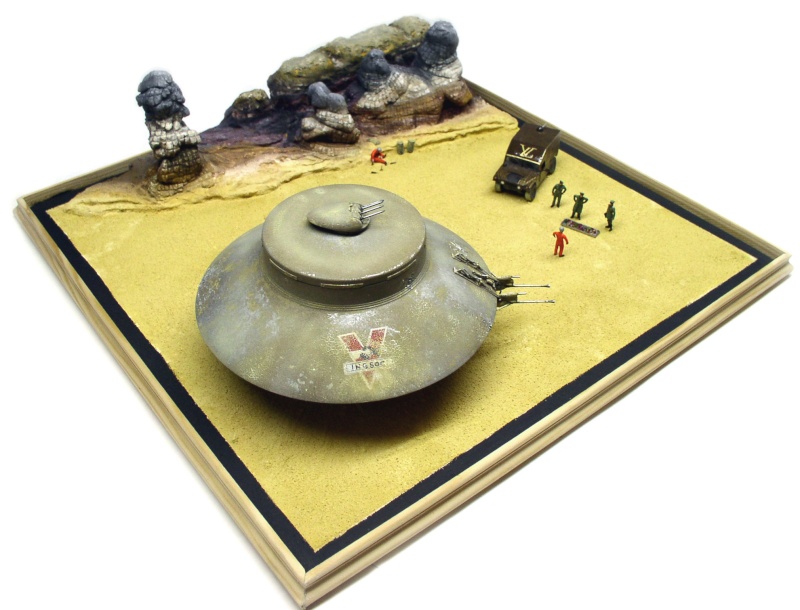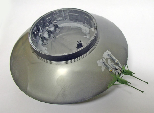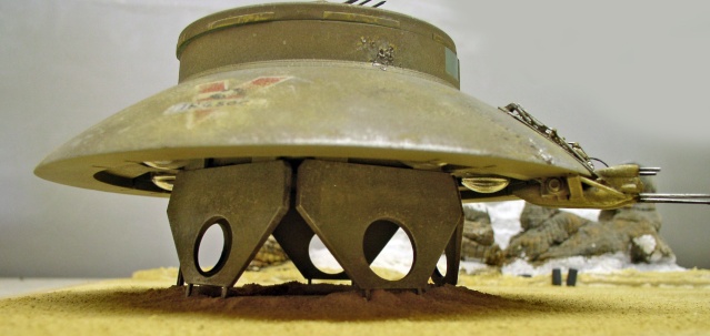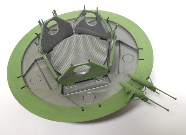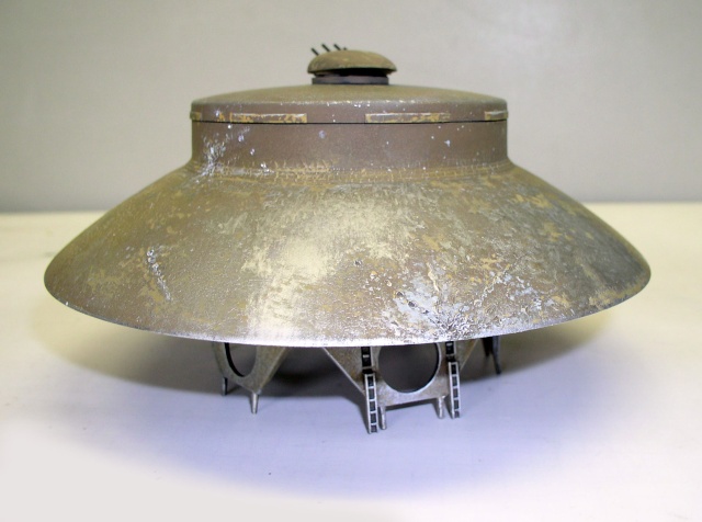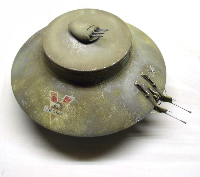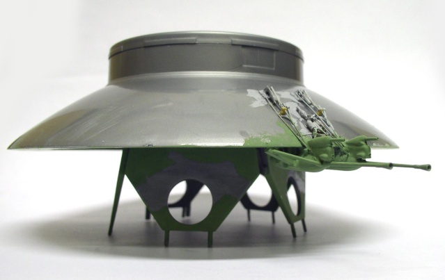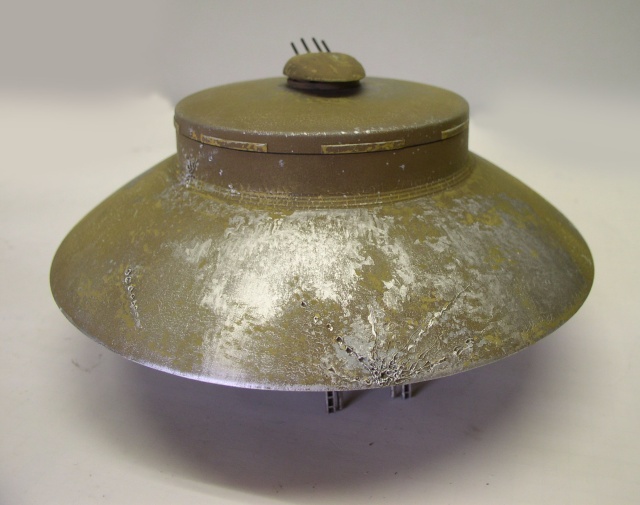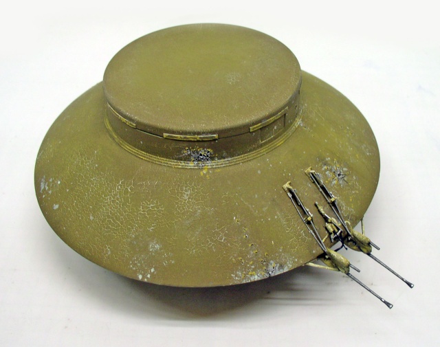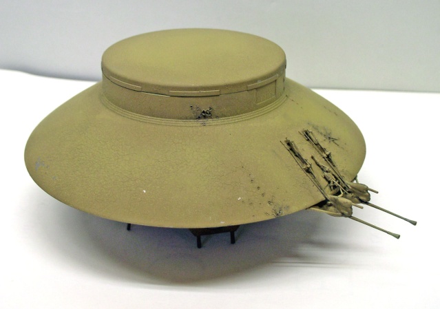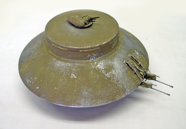La soucoupe terminée. Un tourelleau à affût quadruple de P61 "Blackwidow" est rajouté sur le dessus...