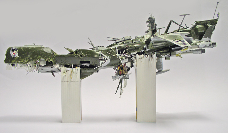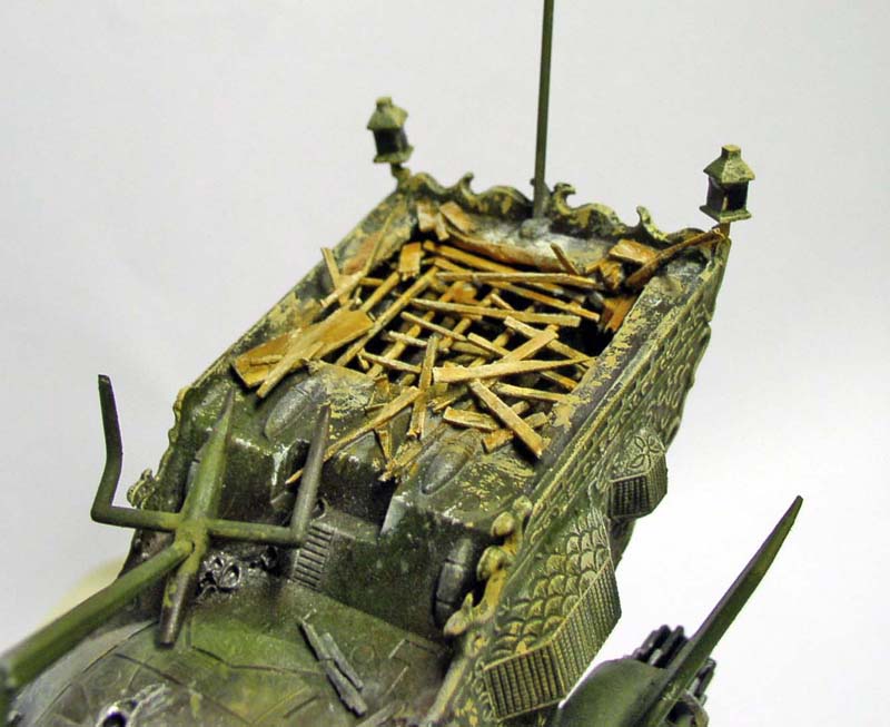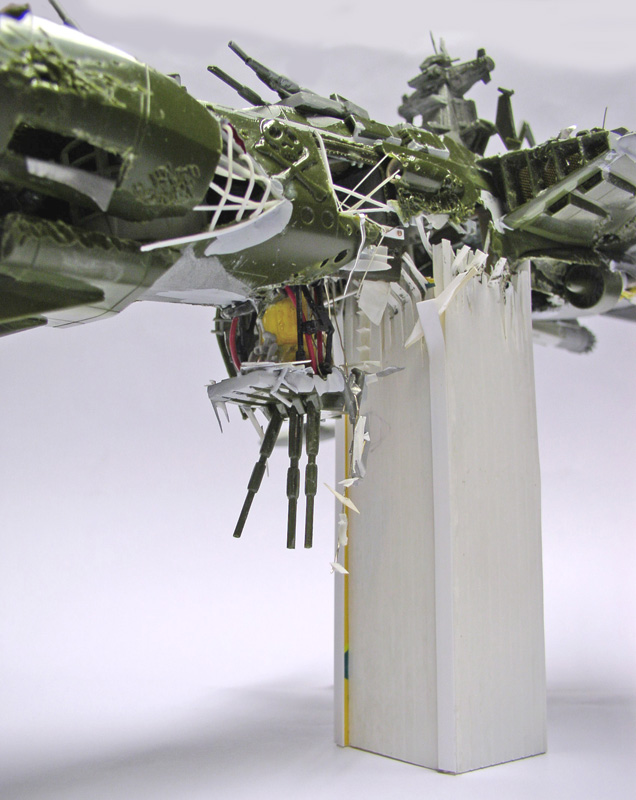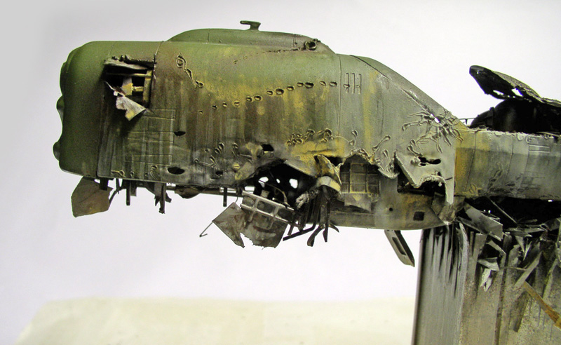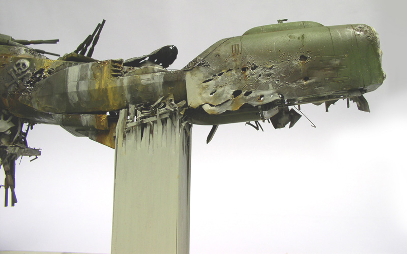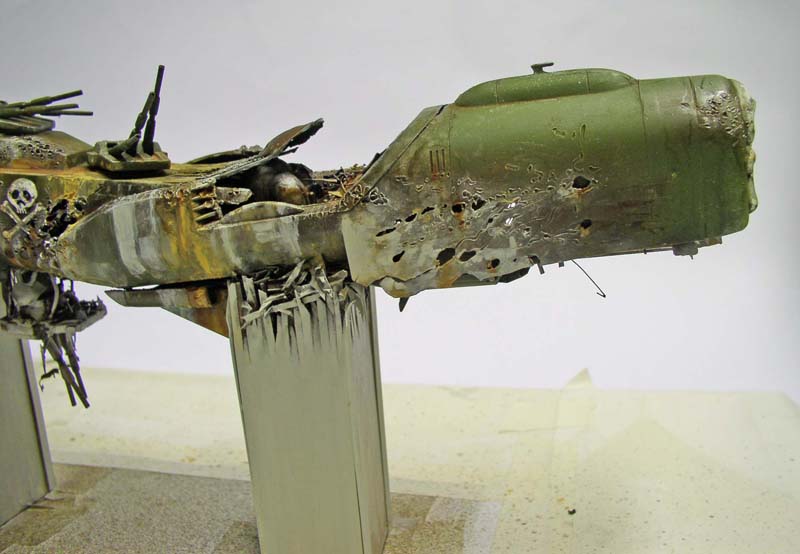 Shredded sheet metal is dry-brushed with 53 aluminum, then silver 11 to illuminate details...